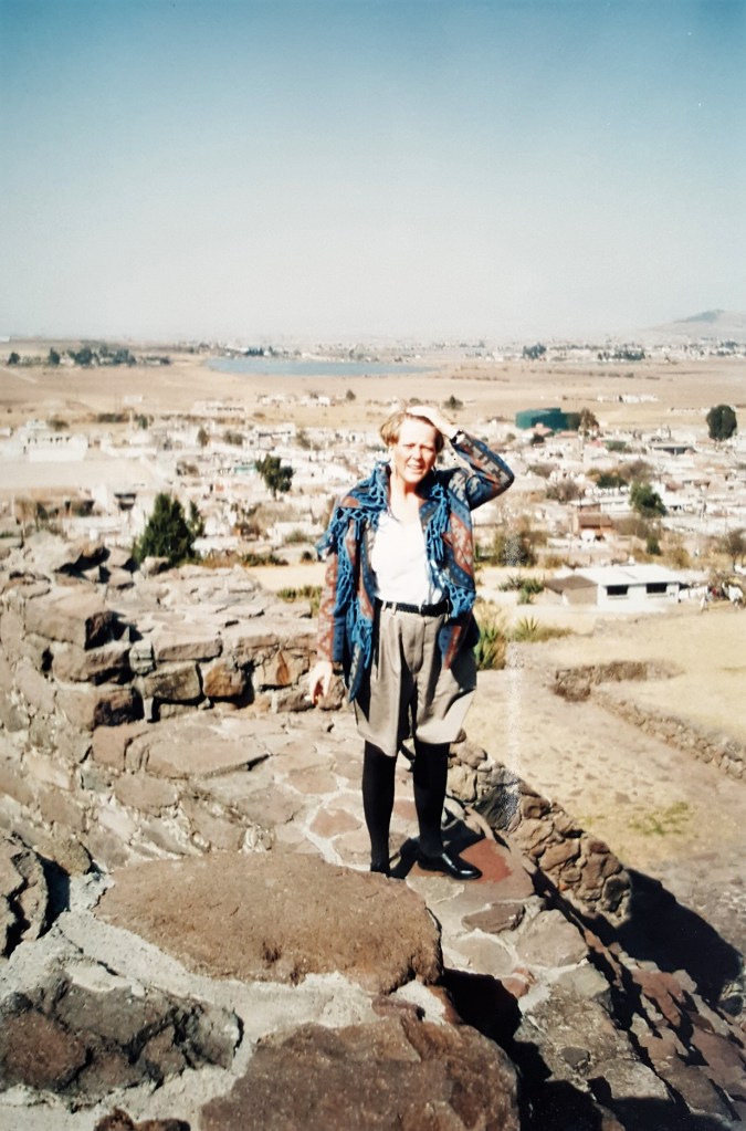 Eitt haustið ákvað ég að fara ein suður á bóginn. Ég dvaldi í Mexíkó 1993-1994 og fór víða um landið. Af því að ég var að miklu leyti ein á ferð komst ég að einhverju marki inn í daglegan veruleika í landinu. Ég þvældist oft um með heimafólki, bæði bláfátæku og sterkefnuðu og allt þar á milli, kynntist jafnt götulistum sem hámenningu, örbirgð og allsnægtum, sorgum og gleði.